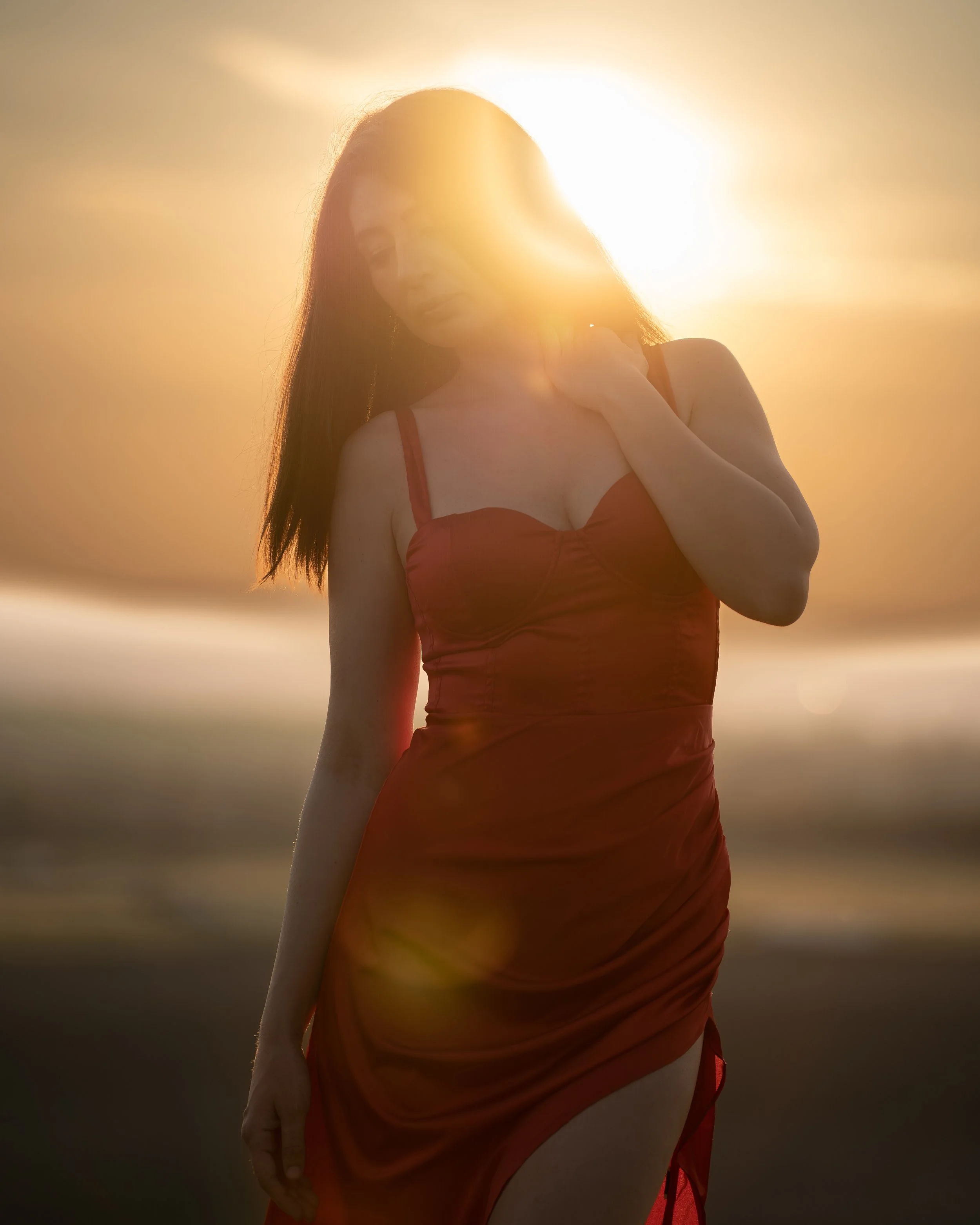 Beszereztem egy piros uszályos ruhát, ami igazán jól mutat a naplemente fényeiben.