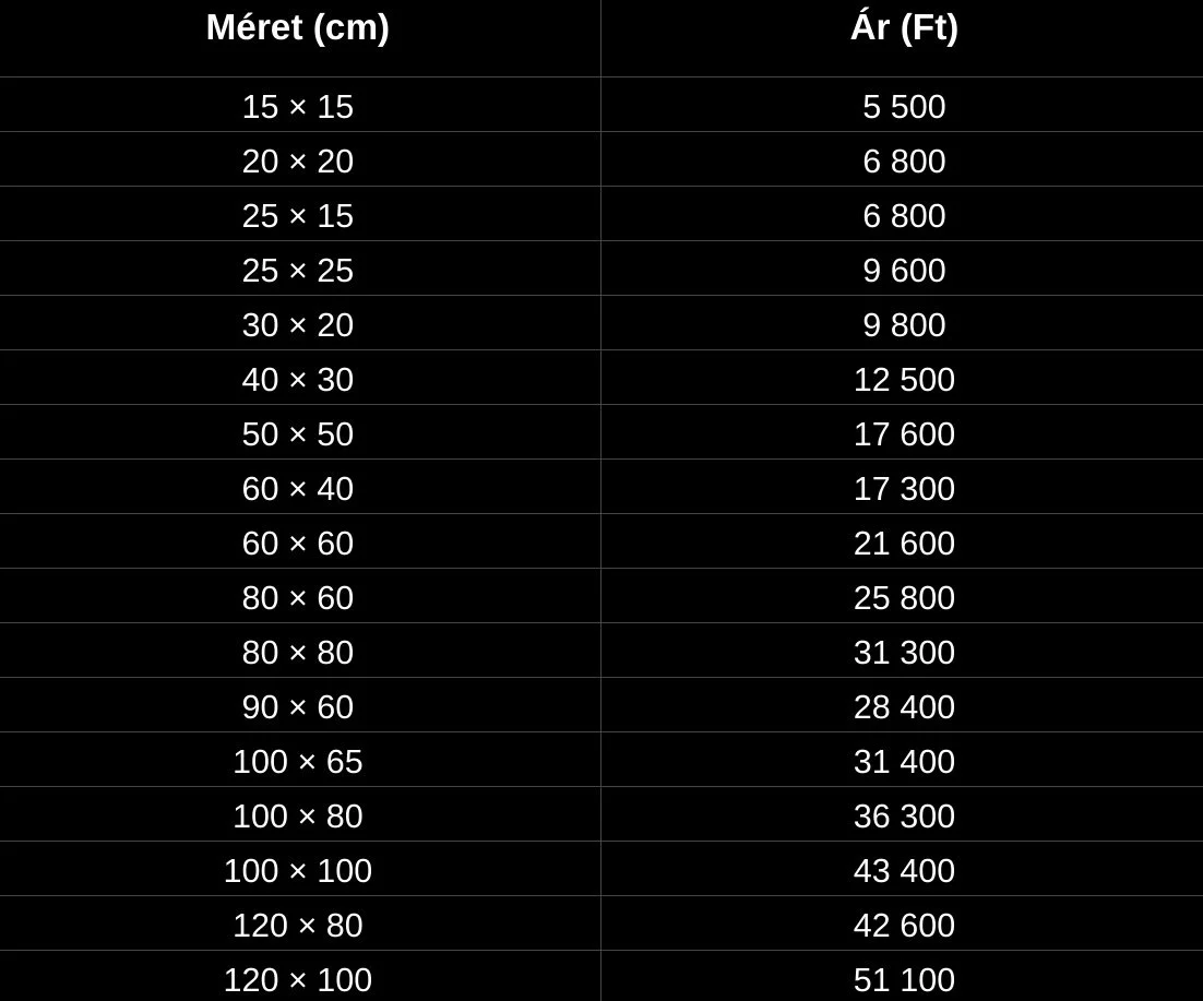 Több méret közül választhatsz: a kisebb daraboktól a nagy faliképekig.
