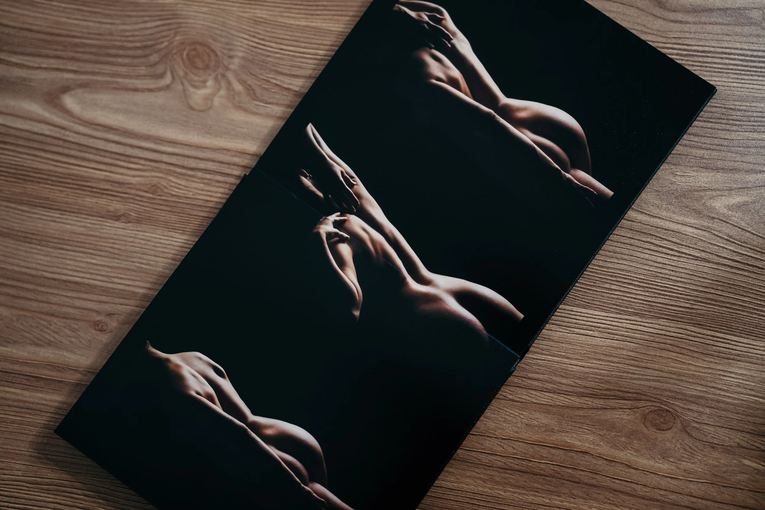 A kötészeti anyagot gyakran választják aktfotókhoz, mert diszkrétebb hatást kelt.